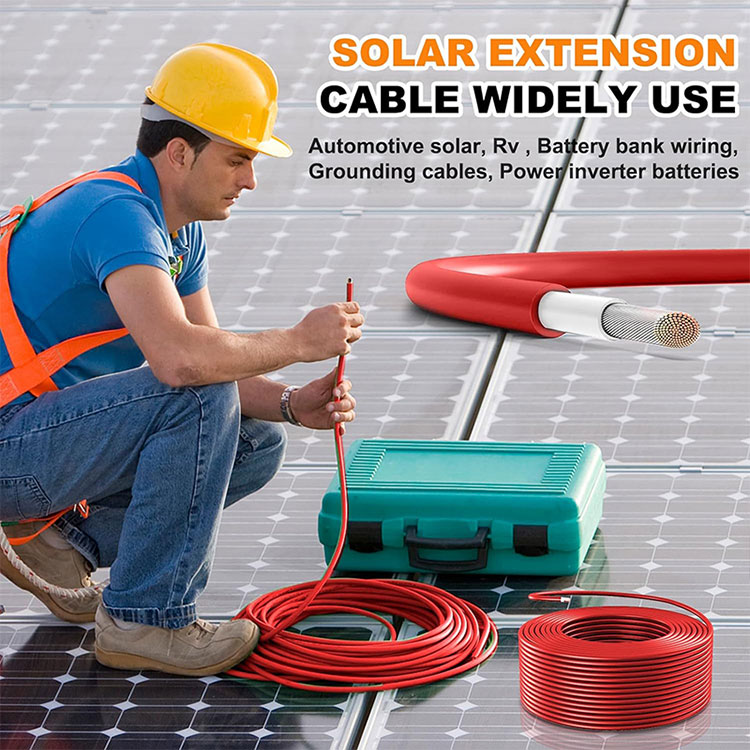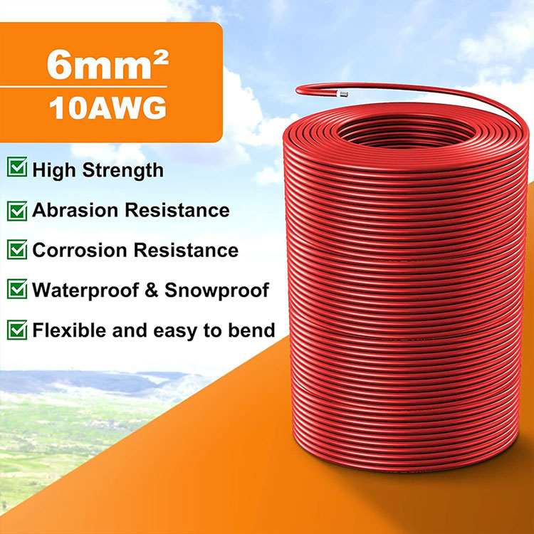 ທ່ານສາມາດຫມັ້ນໃຈໄດ້ໃນການຊື້ Custom Solar Panel Extension Wire H1Z2Z2-K Tinned Copper Outdoor Solar Wire Cables ຈາກພວກເຮົາ. 10 AWG Wire: ຊຸດປະກອບມີສາຍແສງຕາເວັນ 20M / 65FT 10AWG, ຄວາມຍາວພຽງພໍສໍາລັບທ່ານທີ່ຈະ DIY ການເຊື່ອມຕໍ່ໃນລະບົບແສງຕາເວັນຂອງທ່ານ. ໂດຍທົ່ວໄປ, ສາຍໄຟແສງຕາເວັນ 10AWG ແມ່ນເສັ້ນຜ່າກາງສູງສຸດສໍາລັບສາຍໄຟແສງຕາເວັນ, ຫນາແລະທົນທານ. ການນໍາໃຊ້ສາຍສົ່ງແສງຕາເວັນທີ່ມີເສັ້ນຜ່າສູນກາງນີ້ສາມາດສະຫນອງອຸປະກອນຂອງທ່ານທີ່ມີຄວາມໄວການສົ່ງໄຟຟ້າທີ່ຫມັ້ນຄົງແລະໄວ, ຫຼຸດຜ່ອນການສູນເສຍພະລັງງານຢ່າງມີປະສິດທິພາບ.